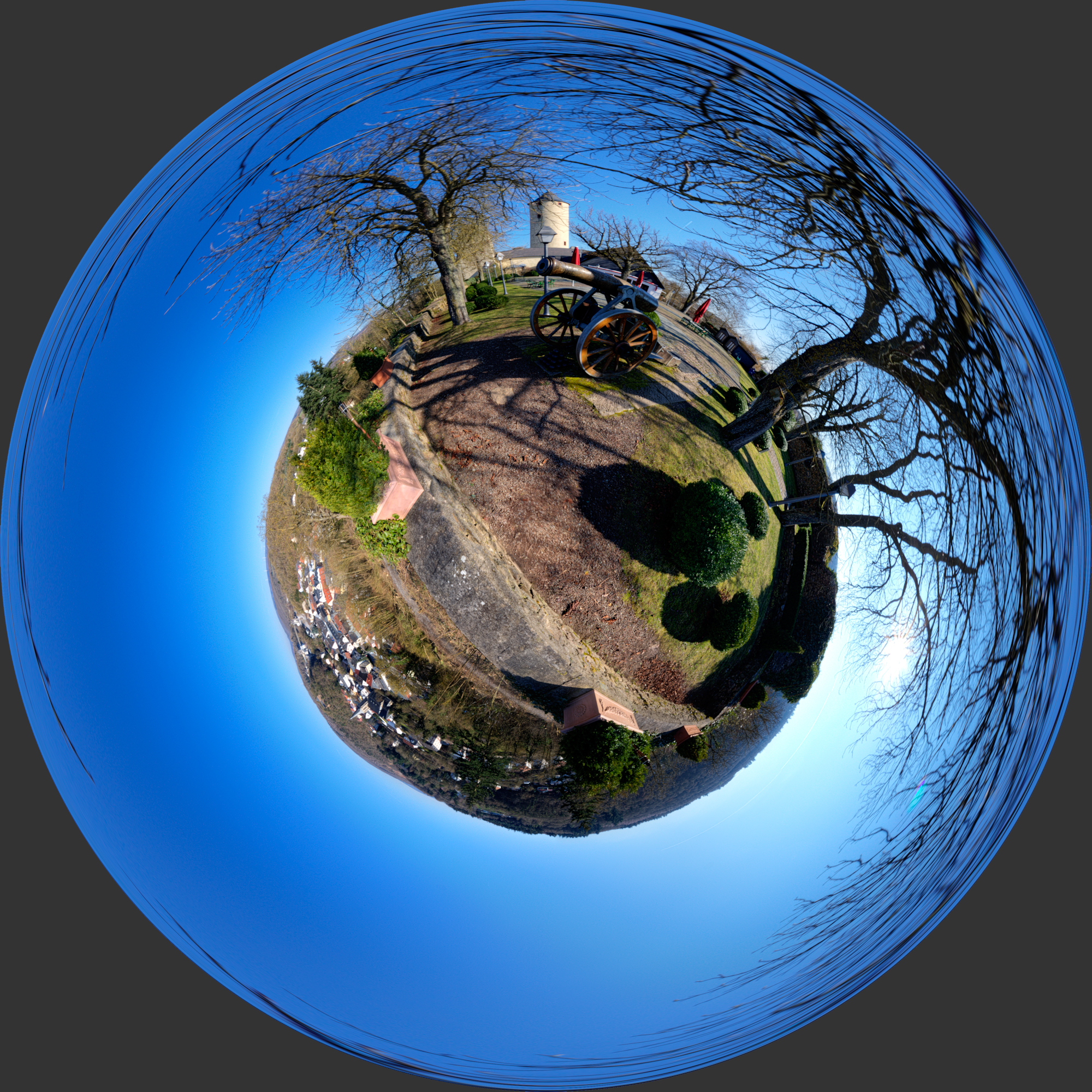 Verwendet man ein Fisheye mit 180 Grad Blickwinkel, sind im Idealfall 2-3 Aufnahmen notwendig.